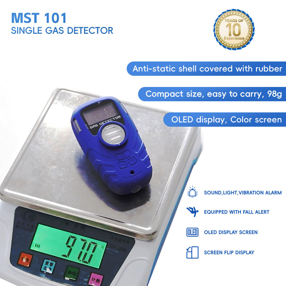 MST101 series portable gasdetectoris a advanced detectioninstrument,with fall alarm function,OLED display screen, visible under sunlight. The shell is designed with rubber coated,whichhas good water and dust resistance. The use of anti-static materialscan meet the explosion-proof requirements. It can continuouslydetect the concentration of toxic gas or oxygen in the ambient air of industrial and mining enterprises,with sensitive reaction and convenient carrying. It has been widely used in iron and steel metallurgy,chemical plant,petrochemical industry,emergency rescue, industrial safety and other industries.MST101 series portable gas detector is one type of advanced single gas analyzer. It's very small ,light weight to easy carry and OLED display screen makes the workers read date clearly under sunlight or other places. Otherwise, the shell of detector is designed by rubber coated plastic mould and anti-static materials, which has good waterproof performance, also can meet the explosion-proof requirements. MST101 fully charge can work 30 days . It has been widely used in iron and steel metallurgy, petrochemical industry, emergency rescue, industrial safety and other industries.