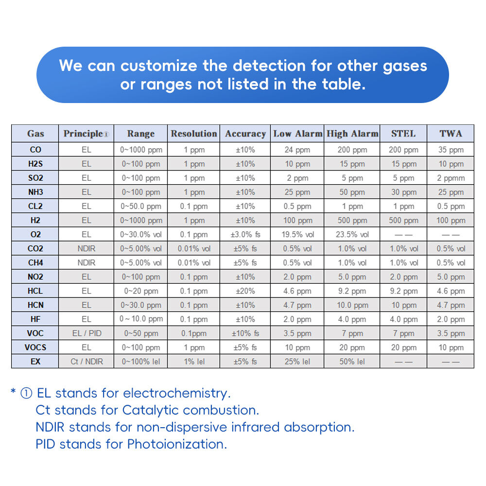 Note: Please contactusfor confirmation before ordering. Other detection gasesorrange can be customized if not listed.